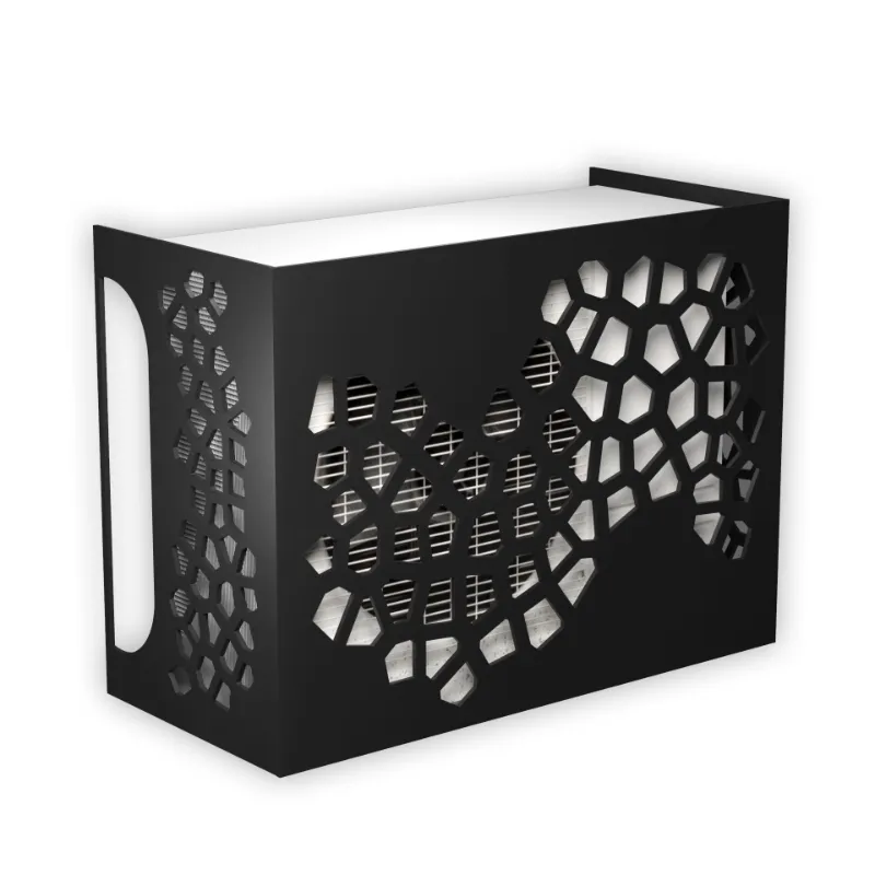 Maska za klimu skladnog i ležernog dizajna. Njen dizajn je poput nežne simetrične mreže isprepletane u nesavršenom, ali harmoničnom ritmu. Ova suptilna neusklađenost između elemenata dodaje dozu ležernosti, dok simetrija i sklad pružaju elegantan vizualni doživljaj. Maska Selest stvara osećaj slobode, prirodne lepote i harmoničnog dizajnom.